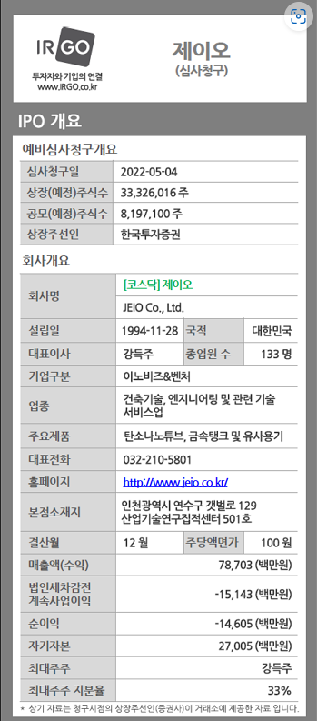 작년 11월 수요예측 부진으로 상장을 잠정 중단한 제이오는 이번에는 당초 목표했던 공모가와 공모 규모의 절반 수준까지 낮춰 IPO(기업공개)에 나선 것입니다.