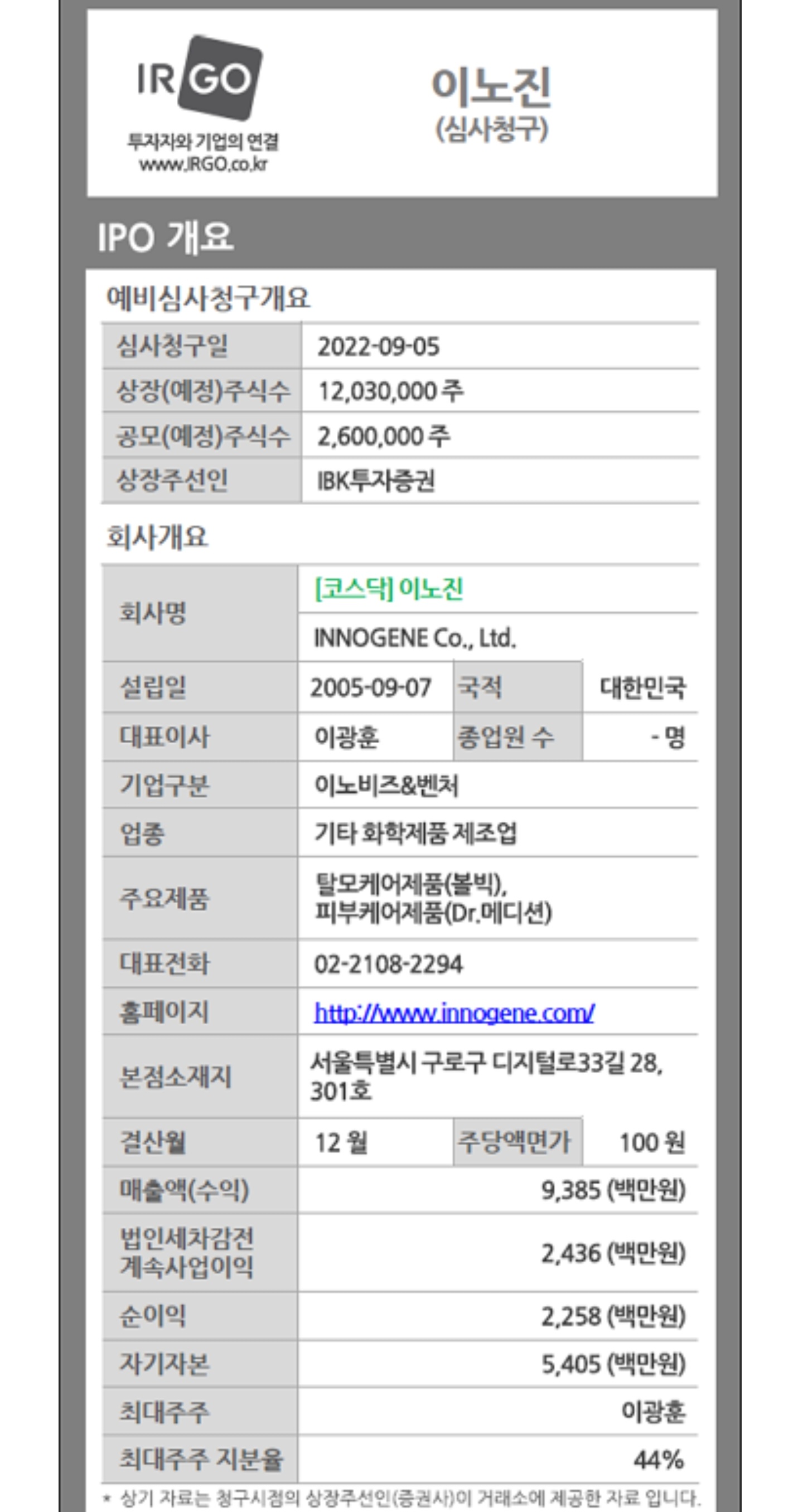 탈모케어제품(볼빅), 피부케어제품(Dr.메디션) 제조,도매회사 이노진이 2월 20일 코스닥에 상장 합니다.