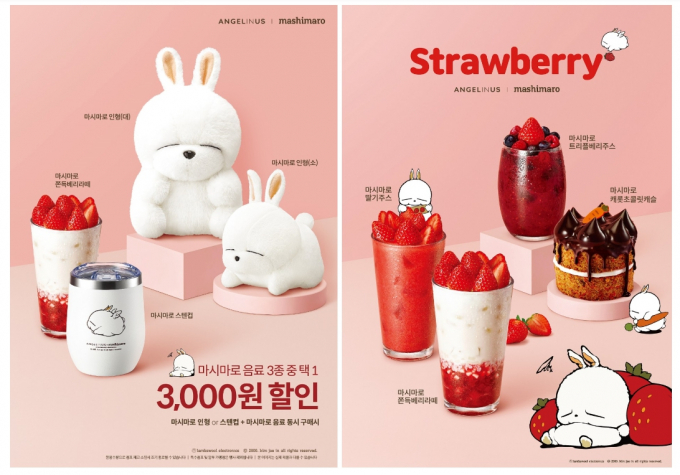 토끼해를 맞아 엔제리너스에서 토끼 캐릭터 ' 마시마로'와 콜라보한 딸기 활용 신제품을 대거 선보였네요