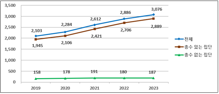 | 계 | 3,076 | 2,886 | 2,832,913 | 2,617,710 | ||||