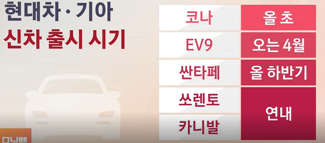 새로운 모델인 EV9를 포함해 싼타페의 완전변경 모델, 쏘렌토와 카니발 부분변경 모델 등이 잇따라 시장에 나올 예정~