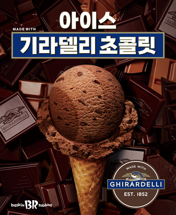 아이스크림 좋아하세요? 초콜릿은요? 배스킨라빈스가 170년 역사의 초콜릿 브랜드 기라델리(GHIRARDELLI)와 협업해 2월 이달의 맛 ‘아이스 기라델리 초콜릿’을 출시한다네요 ㅎ 기라델리는 미국 초콜릿 회사인데 특히 이 회사는 원두 선별부터 시작해 로스팅 작업이나 정제 과정 등 완성품에 이르기까지 전 공정을 관리하여 높은 퀄리티의 제품을 생산하기로 유명한데 덕분에 핫초콜릿 같은 경우에는 세계 최고로 인정받으며 명실공히 미국을 대표하는 세계적인 브랜드로 자리매김하고 있데요 ㅋ ‘아이스 기라델리 초콜릿’은 기라델리 초콜릿의 깊고 진한 맛과 풍미를 그대로 구현한 제품으로, 입 안 가득 부드러운 달콤함을 선사하는 초콜릿 아이스크림, 다크 초콜릿, 밀크 초콜릿 세 가지 조합에 초코칩도 있데요 하..달다달어 ㅎ..